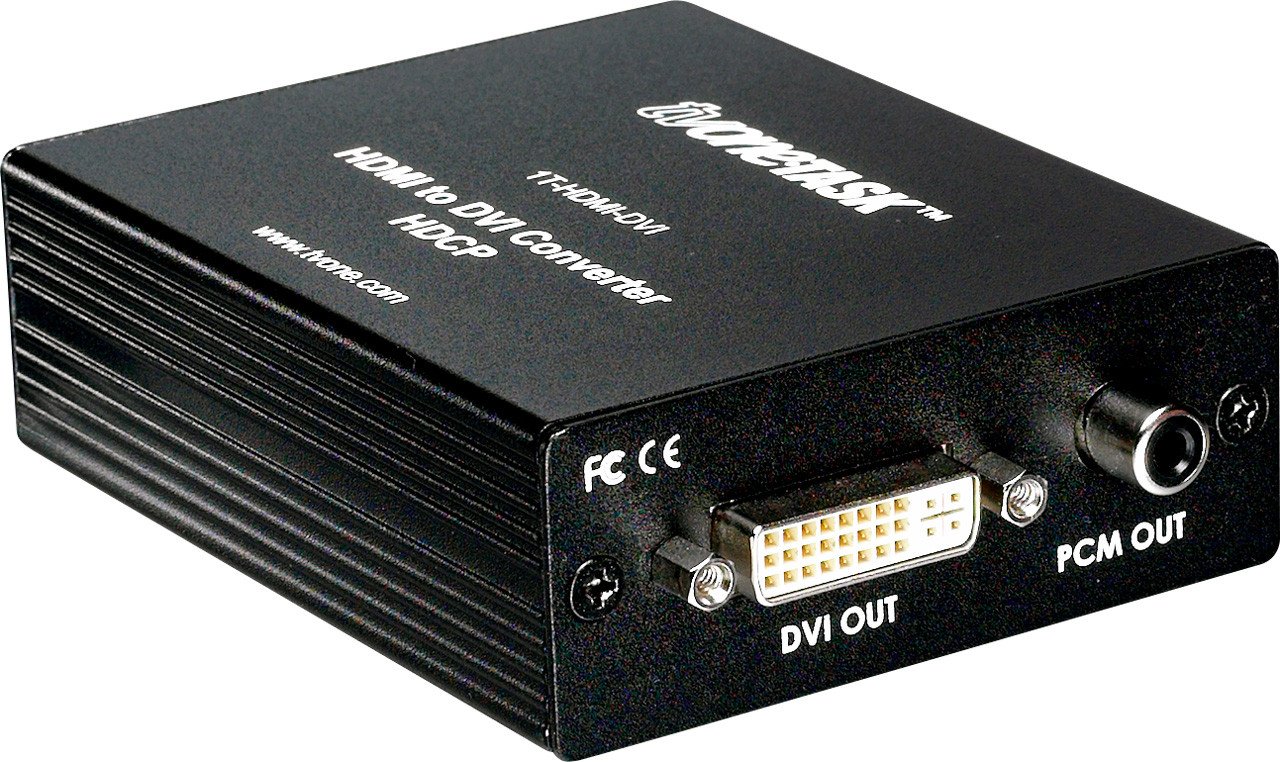 1T-HDMI-DVI converts HDMI compliant signals to Digital DVI format signals enabling display on digital HDTV monitors or input to DVI switcher devices. HDMI inputs are transformed to RGB Digital signals.